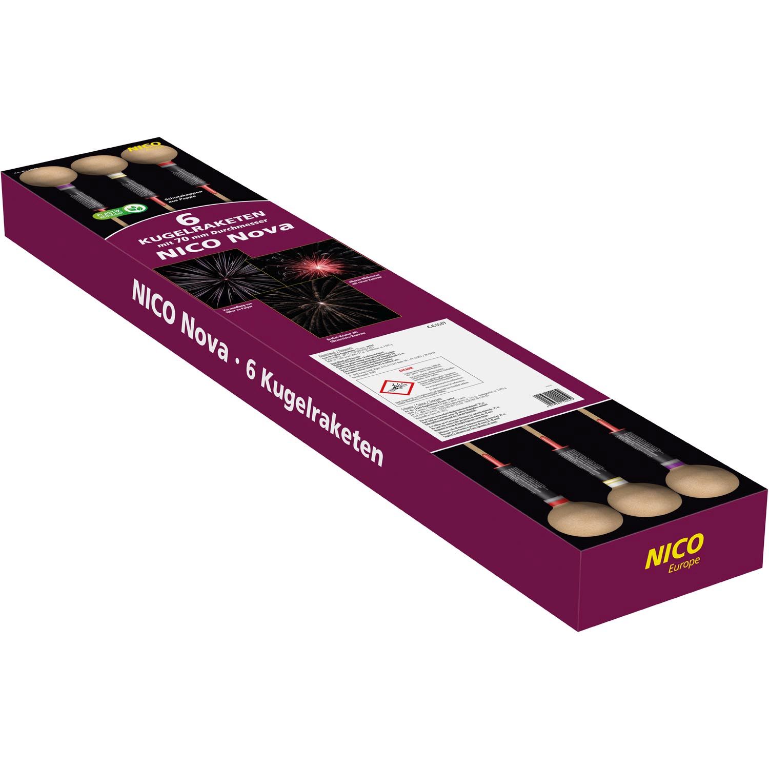 Verpackungseinheit mit 6 Raketen.Die Nova Raketen haben eine Satzmenge von 171 g / Stück und ein 67 mm
